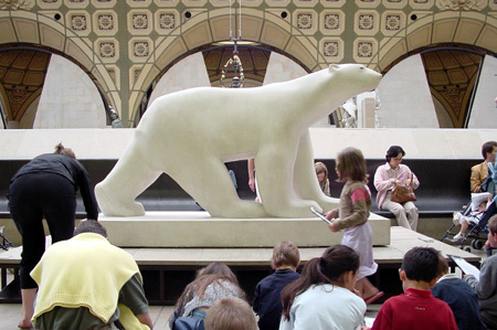 這件大白熊雕塑,簡單又可愛,我們參觀那一天,一群老師帶著小朋友校外教學,