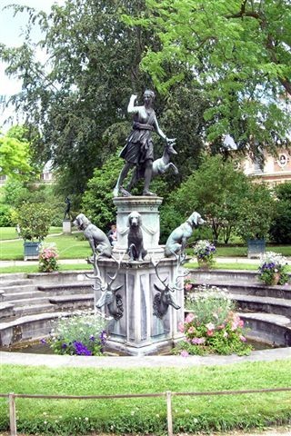 說到狩獵,當然這裡的庭園也要跟它扯的上關係,這是月神黛安娜狩獵的場景,